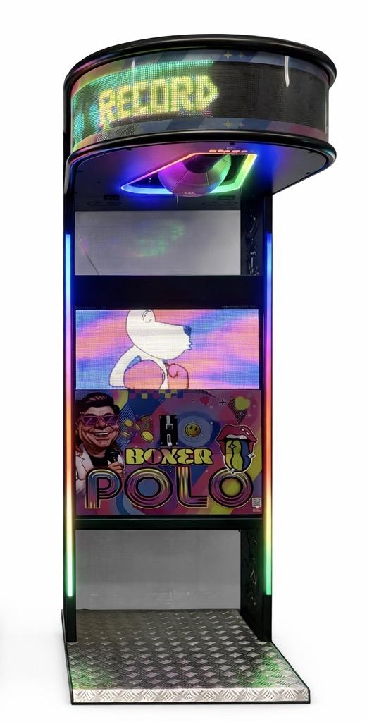 BOXER POLO to atrakcyjna maszyna rozrywkowa typu boxer, która łączy klasyczną grę siłową z energetycznym klimatem disco polo. Urządzenie przyciąga uwagę nowoczesnym designem, kolorowym oświetleniem LED oraz dużym, czytelnym ekranem, który wyświetla wyniki, animacje i efekty wizualne.